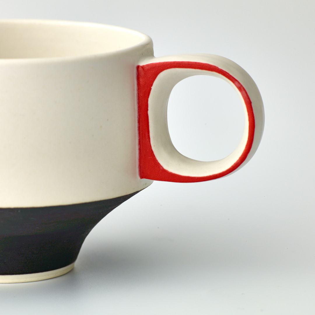 The subtle, conical body of each cup connects with a squared, ‘D’ shaped handle. The lip is gently flared, offering a relaxed, comforting mouth-feel. The TY Series range includes a small espresso cup, a mid-sized coffee cup and a modernist mug for larger servings.