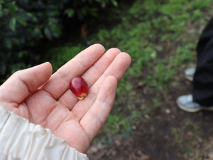 About six months later, the coffee has arrived in Japan. The flavors have settled slightly since we cupped it at origin, but the juicy peach-like fruitiness and remarkable cleanliness still stand out.