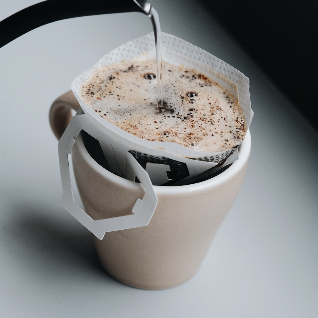 An on-the-go drip filter that works like a drip bag & pour over filter. Just pop it open, put it on your favorite mug, put some ground coffee and voila!