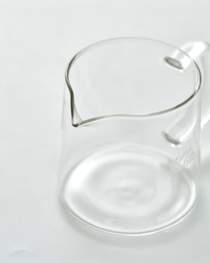 From the sharp edge of the spout and the slender handle to the straight-lined body, the jug’s refined form is complemented by the subtle natural waviness of glass and Kalita’s familiar logo. These elements come together in a server that is both simple and beautifully balanced.