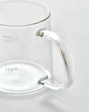 Compared to many other servers, the Kalita Jug 400 features a larger handle that can be firmly held with four fingers. The generous space between the handle and the body allows you to pour hot coffee safely without your hand touching the heated glass.