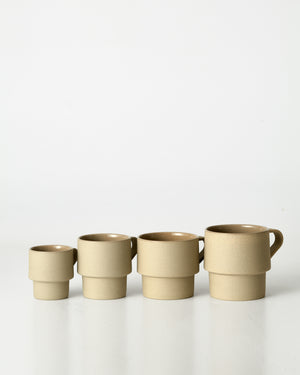 Cups are available in three sizes (3oz (95ml), 6oz (185ml), 8oz (250ml), and 11oz (320ml) ) to suit the beverage of your choice: 3oz for an espresso, 6oz for a cappuccino and a flat white, 8oz for a latte and 11oz for a cup of pourover, etc. Every size can be used with either the Circle or Oval Saucer.