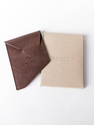 Simple to assemble anytime, anywhere, the Tetra Drip Pocket Coffee Dripper folds into a stunningly designed drip filter for fresh, top quality coffee when you're far from home. The Tetra Drip coffee dripper comes with a slim, passport-sized genuine leather wallet, slim enough to be fit in your jeans pocket.