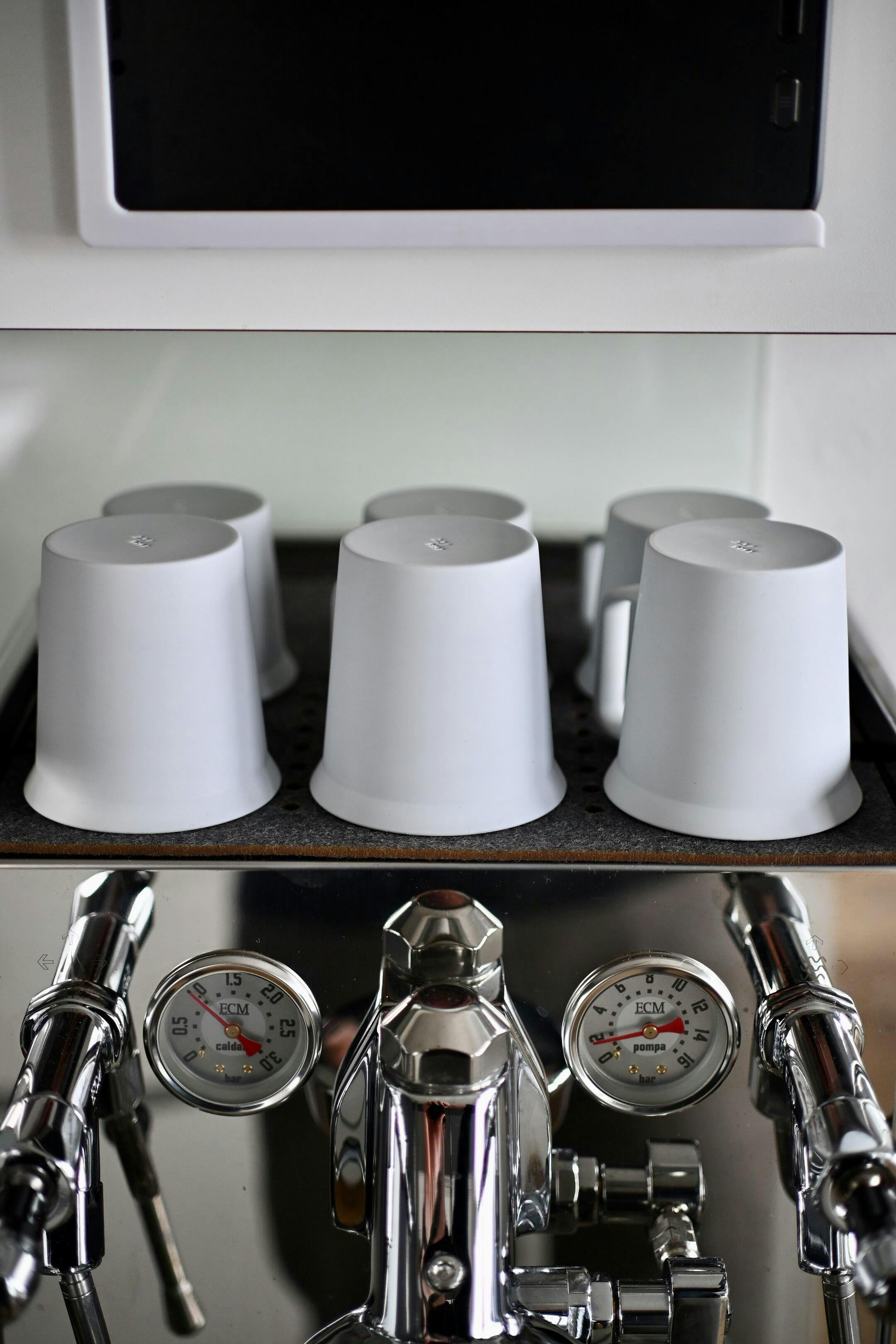 The subtle, conical body of each cup connects with a squared, ‘D’ shaped handle. The lip is gently flared, offering a relaxed, comforting mouth-feel. The TY Series range includes a small espresso cup, a mid-sized coffee cup and a modernist mug for larger servings.
